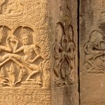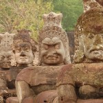 Zwei Tage lief ich wirklich von morgens bis abends durch die Tempelanlagen von Angkor, schoss rund 700 Bilder und lief wohl einen nicht unwesentlichen Teil der Zeit mit offenem Mund herum. Die Ruinen sind mit ihrer Ausdehnung und durch die unglaublich große Menge an Skulpturen, Figuren, Steinreliefen und anderen Kunstwerken die beeindruckendsten Tempelanlagen, die ich bisher gesehen habe. Zudem kommt, dass ich die ganze Zeit das Gefühl hatte, durch einen schlechten Abenteuerfilm zu laufen, da die Gebäude – häufig von riesigen Baumwurzeln durchstoßen – wie von einem Bühnenbildner entworfen aussehen.