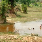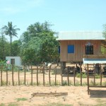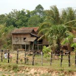 Donnerstag morgen stieg ich in den Bus Richtung Phnom Penh, rund sechs Stunden Fahrt für acht USD. Die Strecke war wunderschön führte die ganze Zeit auf einer recht gut ausgebauten Straße übers Land und durch Dörfer. Weite, gelbe und je weiter wir nach Süden kamen saftug grüne Felder wechselten sich mit Häuser und Basthütten ab, die meist nach traditioneller Weise auf Pfählen gebaut waren, um die Einwohner vor Schlangen und Tigern zu schützen (zumindest die Tiger sind, wenn auch nur teilweise vorhanden, heute kein Thema mehr). Glücklicherweise wurde der chinesische Kungfu-Film, der lautstark aus den Lautsprechern plärrte, bald abgestellt, so dass ich mir die Landschaft in Ruhe ansehen konnte.